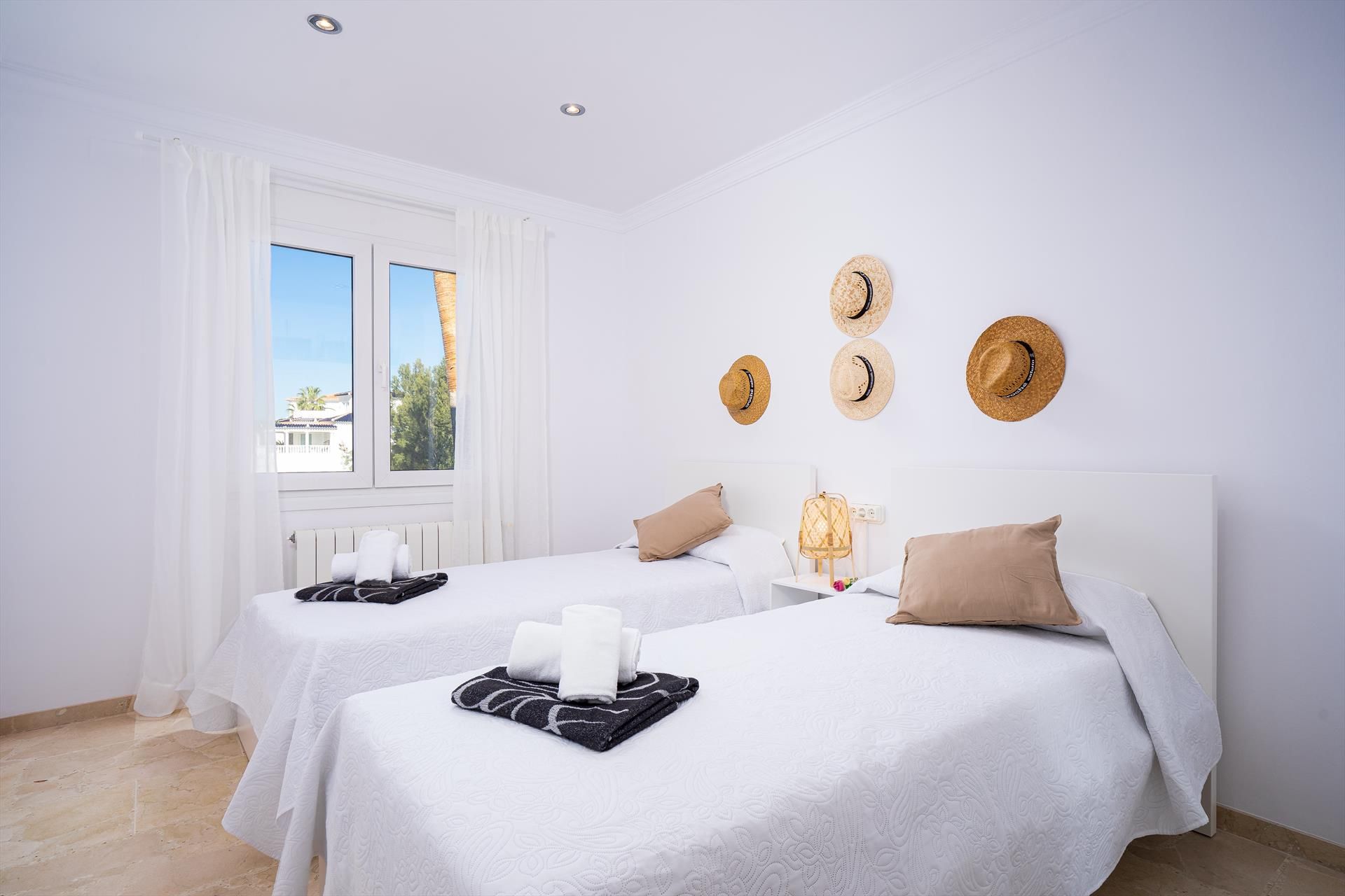 La villa tiene 3 dormitorios y 3 cuartos de baño, distribuidos en 2 plantas. El alojamiento ofrece privacidad, un jardín bonito con césped y árboles, una piscina maravillosa y unas bonitas vistas a la bahía, a la montaña y al puerto. El confort y la cercanía de la playa, sitios para salir, actividades deportivas, zonas de entretenimiento, lugares para ir de compras, lugares de interés y cultura hacen de esta villa un alojamiento ideal para pasar sus vacaciones en España con familia o amigos.