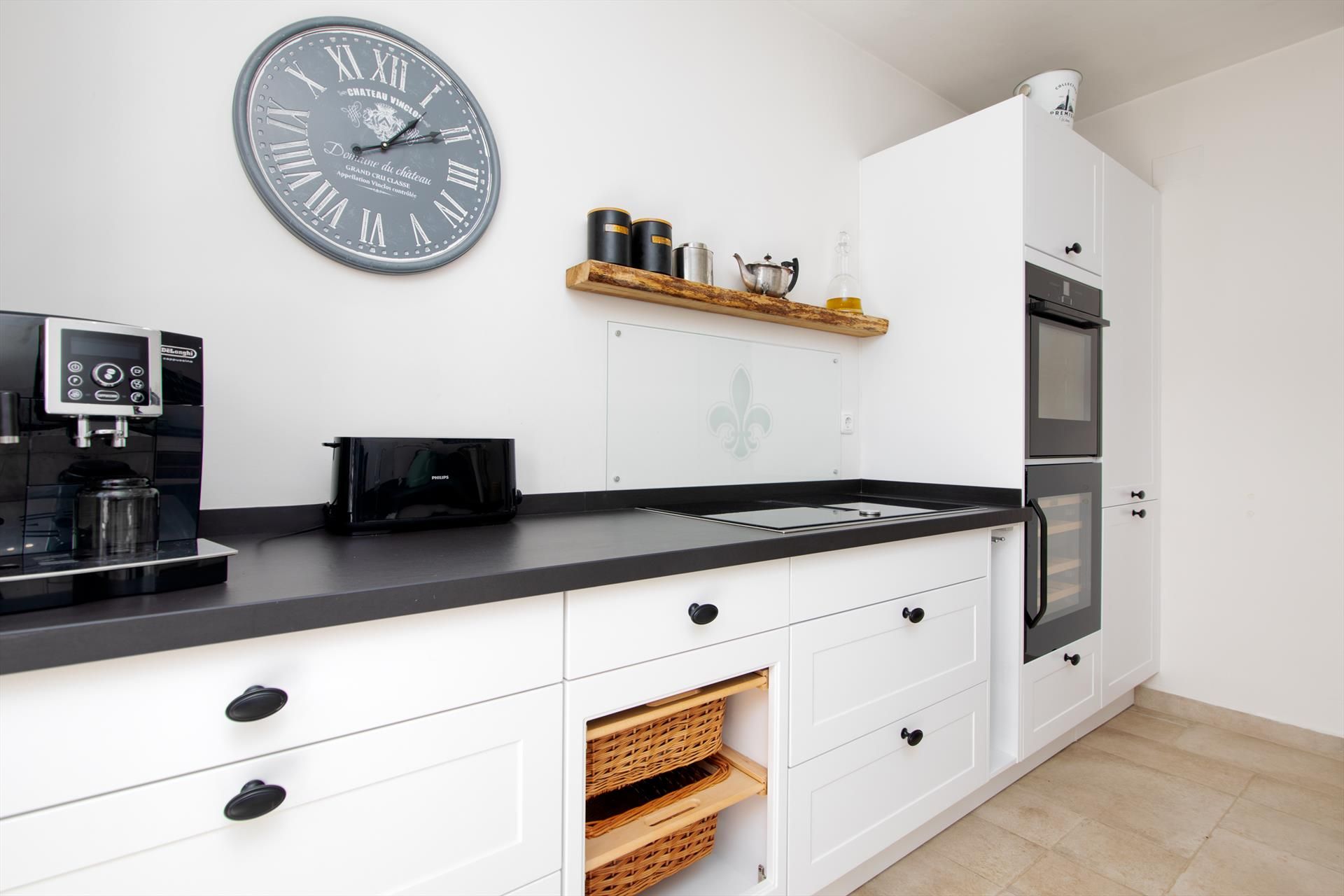 • cocina abierta con placa eléctrica, horno eléctrico, microondas, lavavajillas, refrigerador-congelador, cafetera, tetera eléctrica, tostadora y extractor de jugos