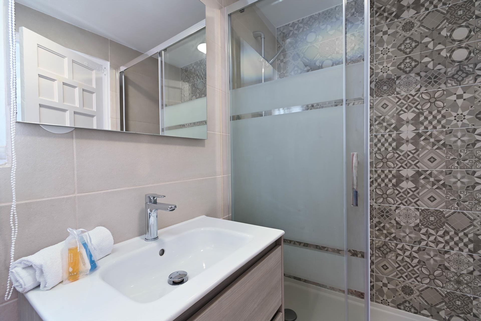 • Cocina abierta con placa eléctrica, horno eléctrico, microondas, lavavajillas, frigorífico, congelador, cafetera, hervidor eléctrico, batidora, tostadora y exprimidor