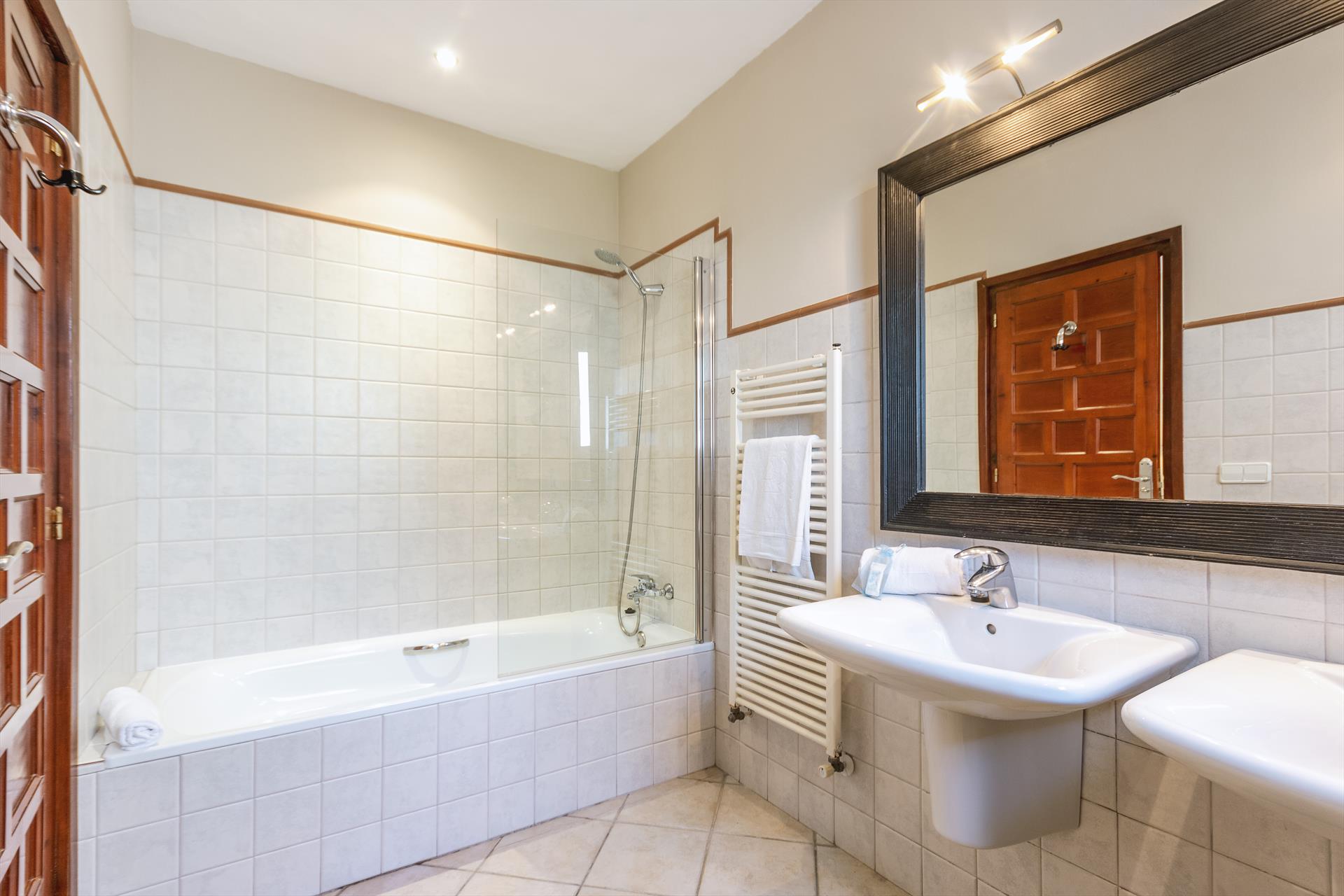 • baño en suite con lavabo doble y bañera/ducha