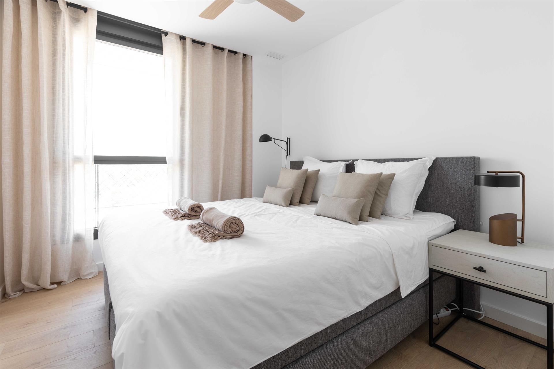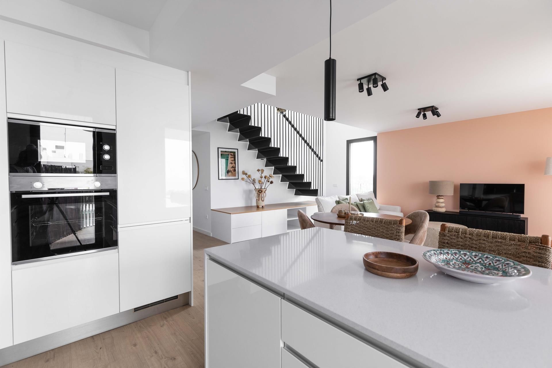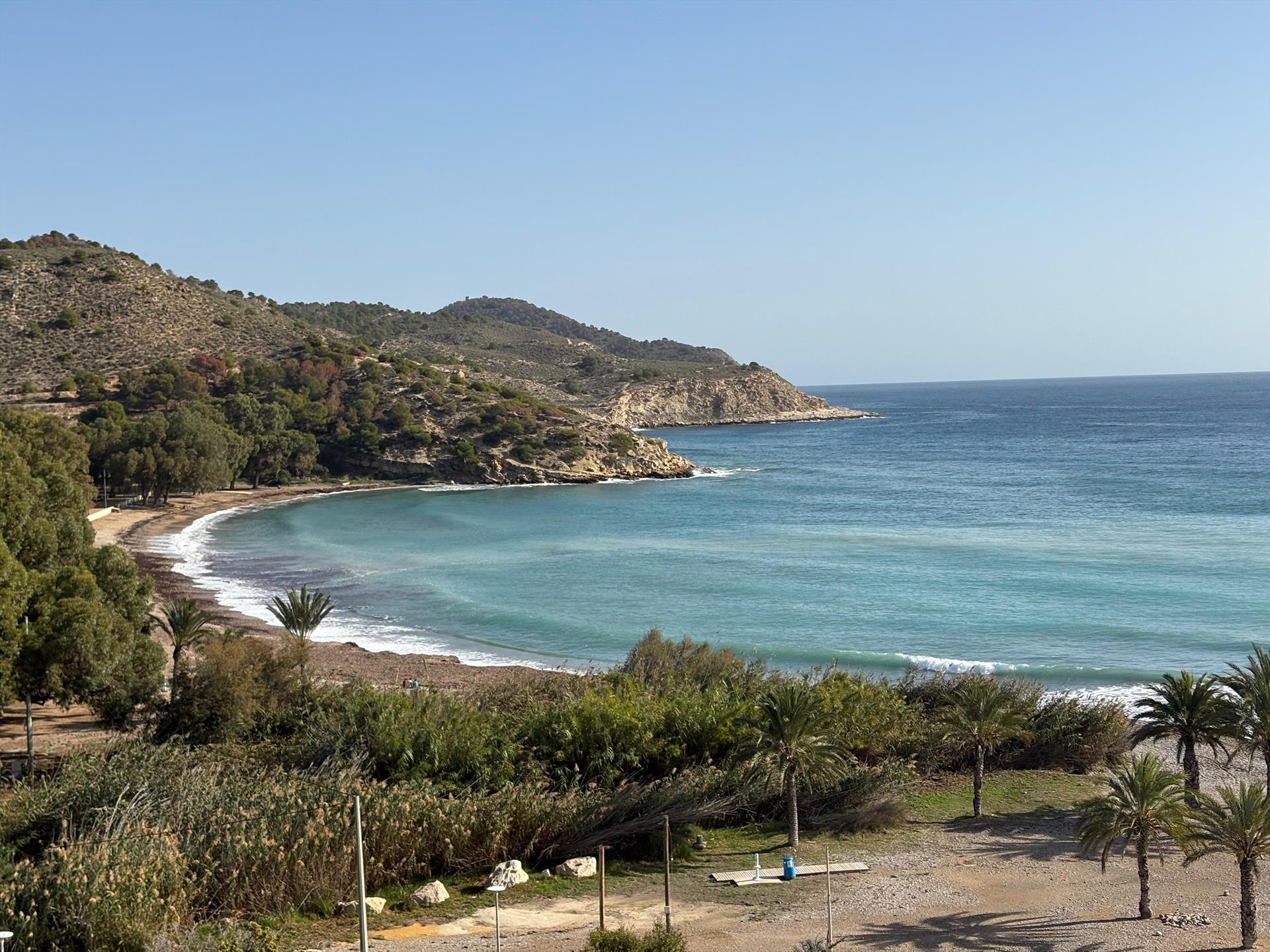 El penthouse cuenta con 3 dormitorios y 3 baños, distribuidos en 2 niveles. El alojamiento ofrece privacidad, un jardín comunitario con césped y árboles, maravillosas vistas al mar, así como hermosas vistas del valle, las montañas y la calle. Su comodidad y la proximidad a la playa, actividades deportivas y servicios de entretenimiento hacen de este un penthouse ideal para pasar sus vacaciones en España con familia o amigos.