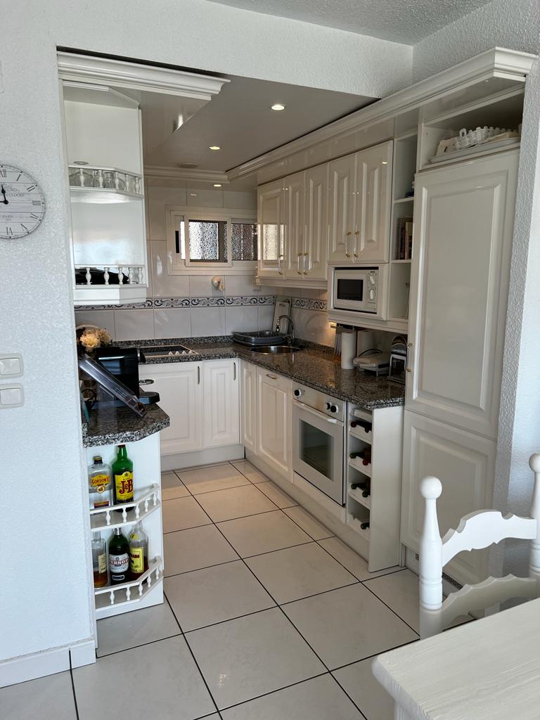 • cocina abierta con vitrocerámica eléctrica, horno eléctrico, microondas, lavavajillas, frigorífico-congelador, cafetera, batidora y tostadora
