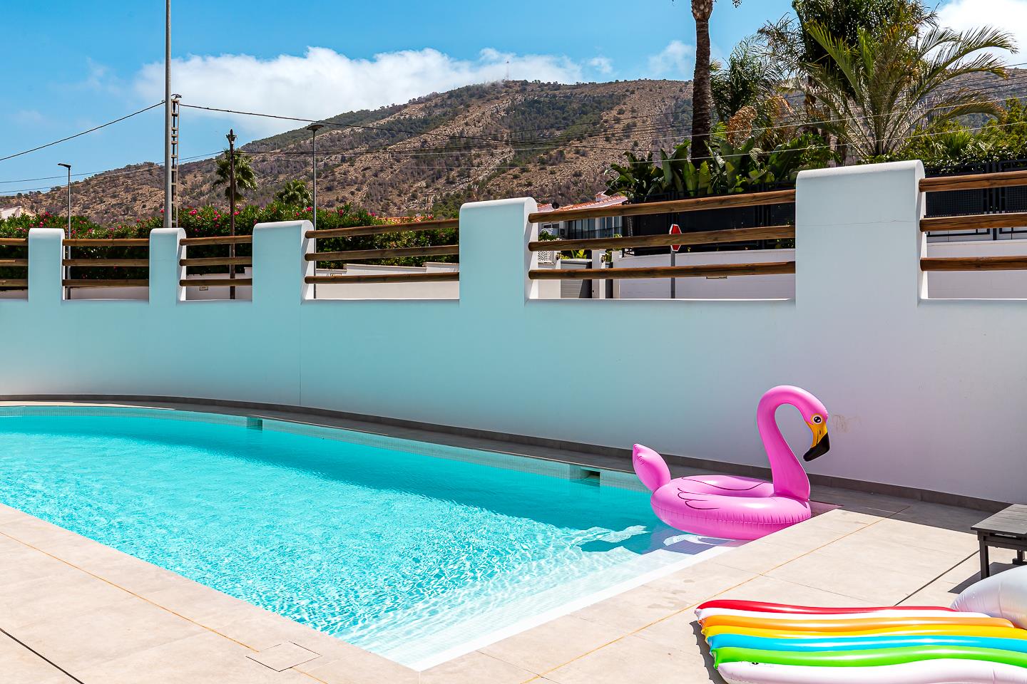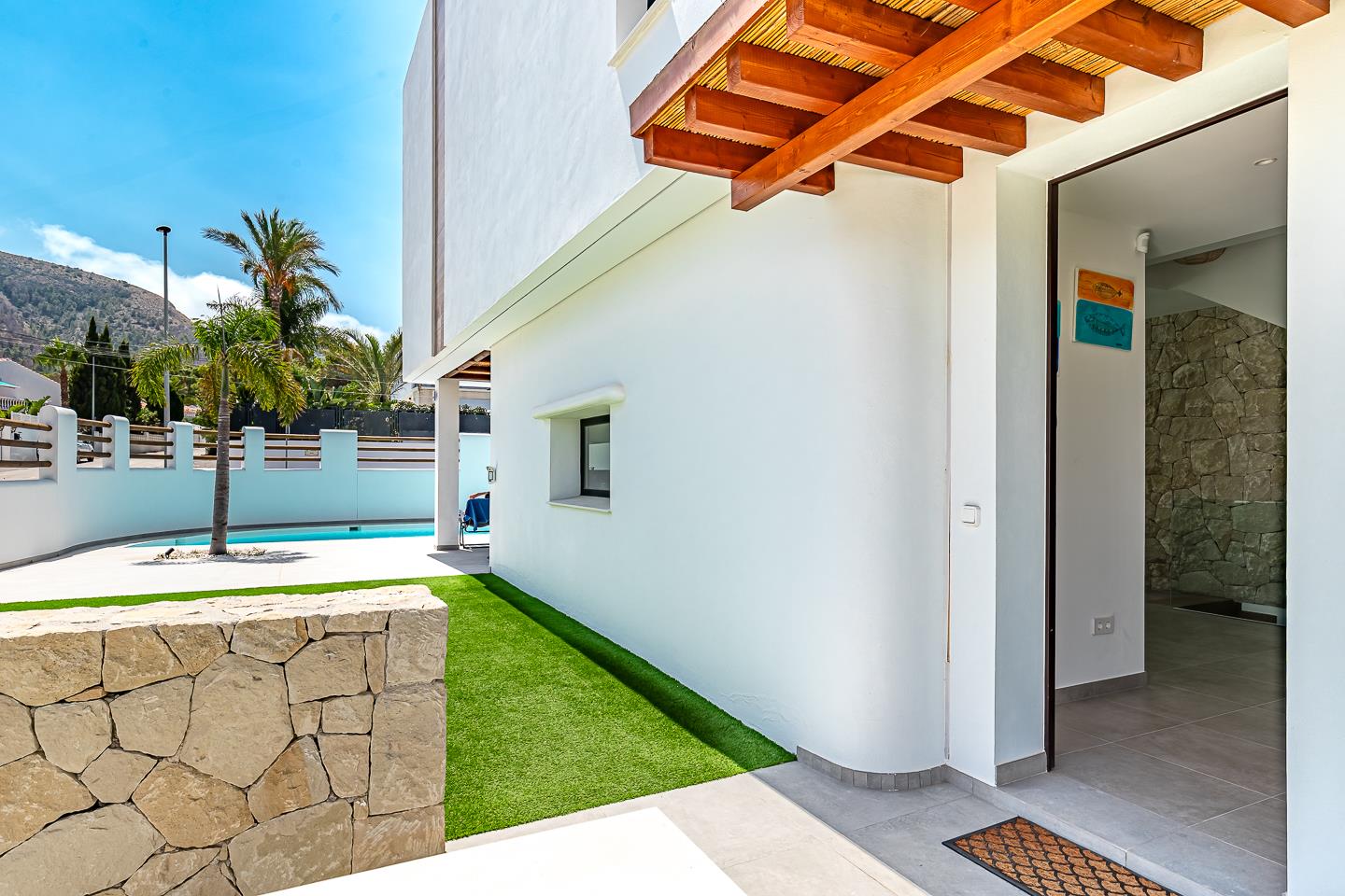 Casa de vacaciones moderna y cómoda con piscina privada en Albir, Costa Blanca, España, para 6 personas. La casa se encuentra en una zona costera, montañosa y urbana, a 2 km de la playa.