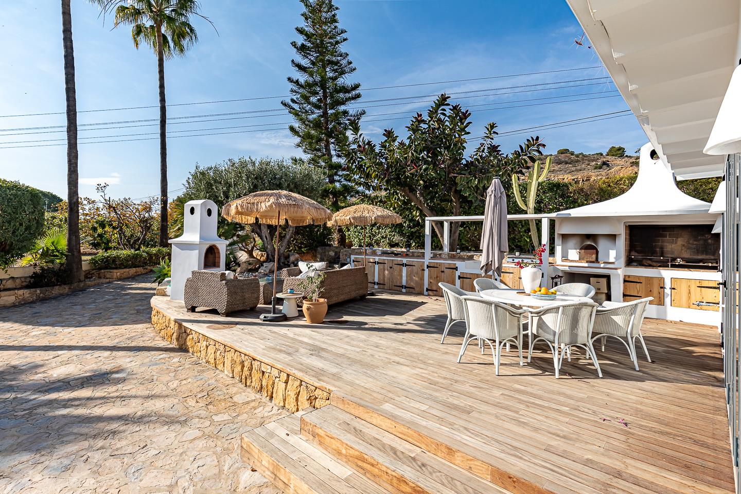La villa cuenta con 5 dormitorios, 4 baños y 1 aseo, distribuidos entre el alojamiento principal y una casita de jardín. El alojamiento ofrece mucha privacidad, un maravilloso jardín con césped, grava y árboles, una encantadora piscina climatizada y hermosas vistas del valle y las montañas. Su comodidad y la proximidad a la playa, tiendas, actividades deportivas y lugares de ocio hacen de esta villa un lugar ideal para pasar sus vacaciones en España con familia o amigos.