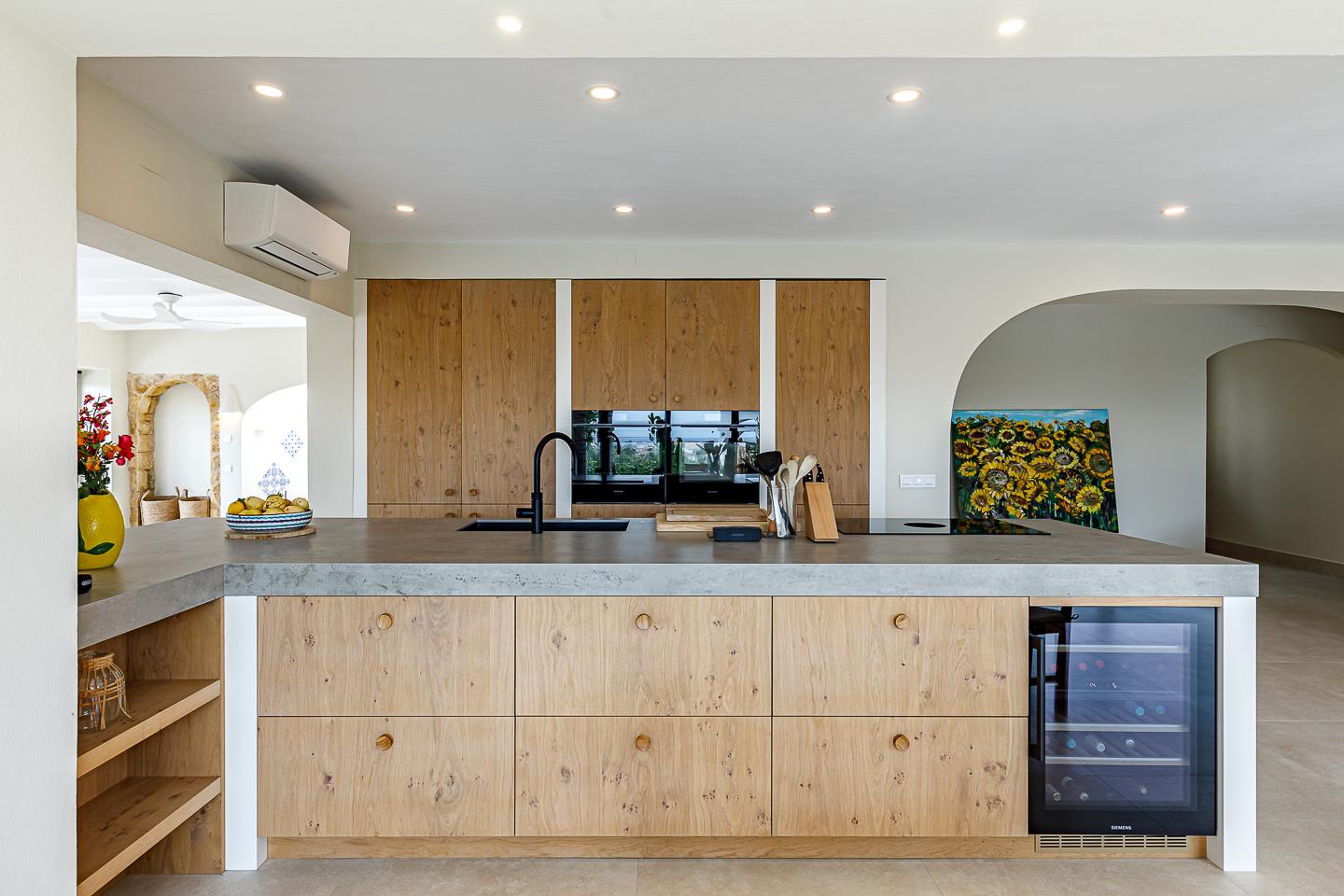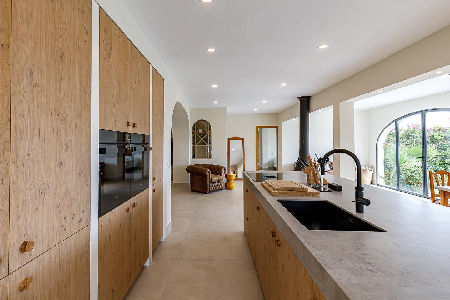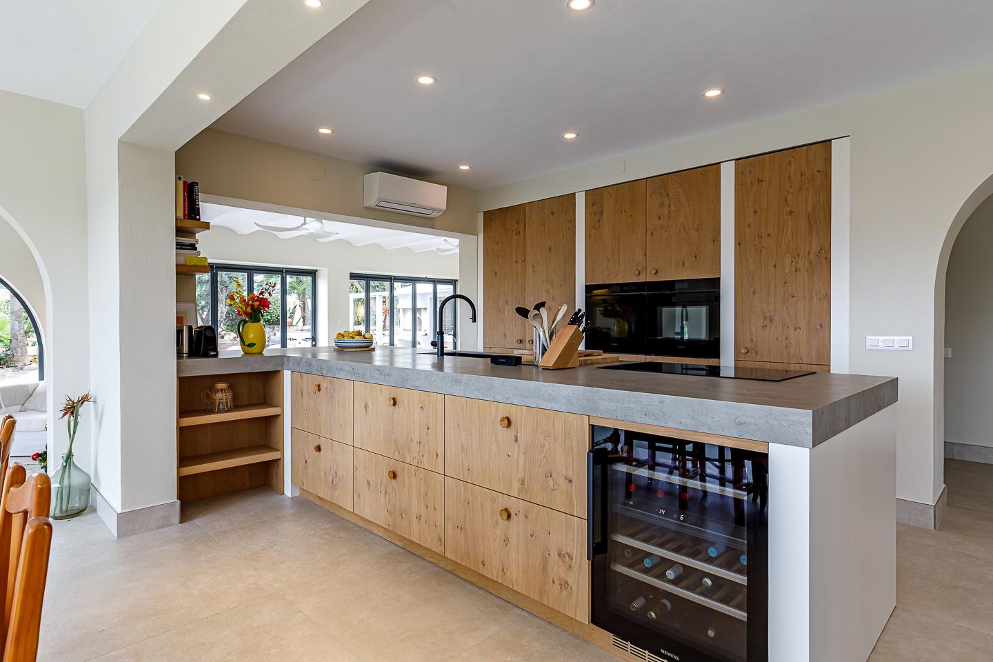 • cocina con placa de inducción, horno eléctrico, microondas, lavavajillas, nevera, cafetera, tetera eléctrica, batidora, tostadora y exprimidor