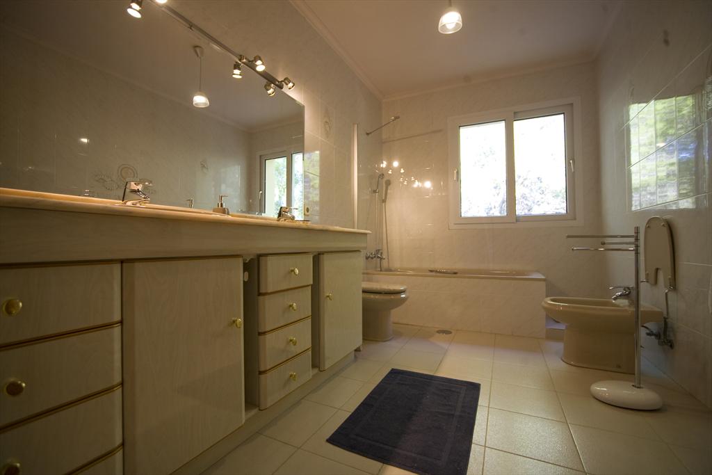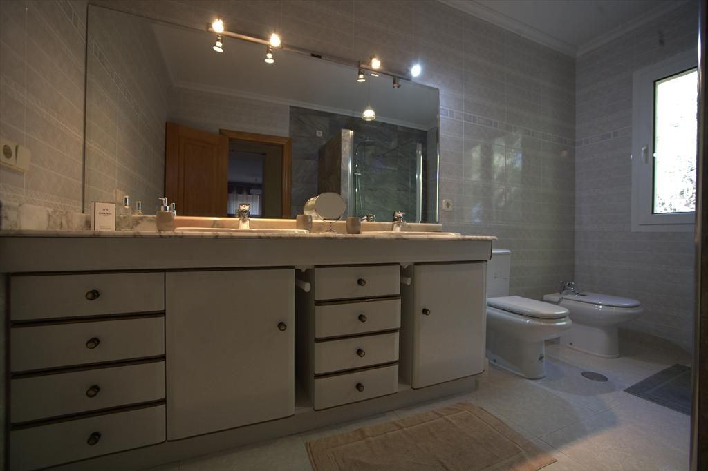• baño en suite con lavabo doble, ducha, bidet, aseo y secador de pelo