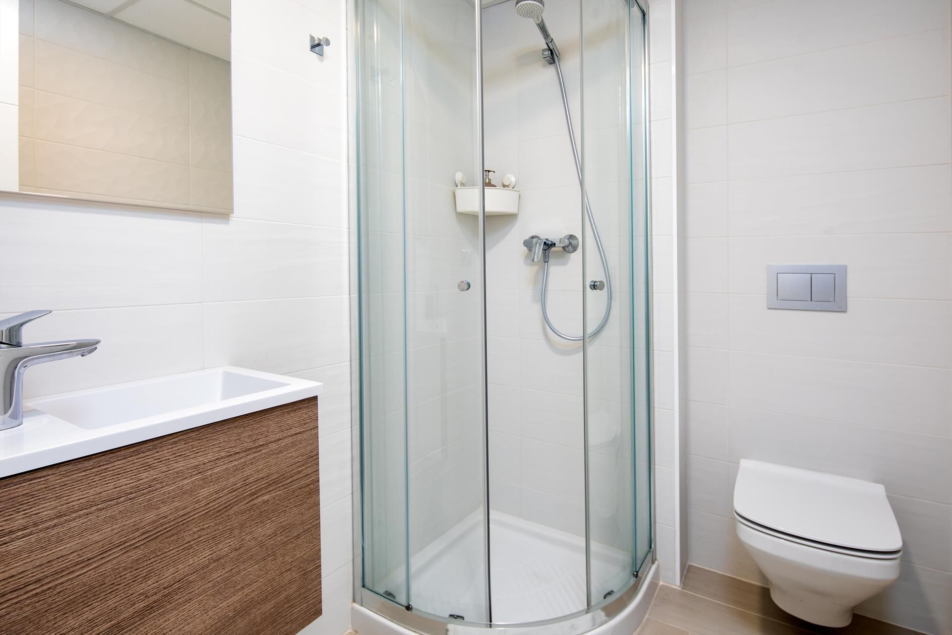 • baño con lavabo, ducha e inodoro