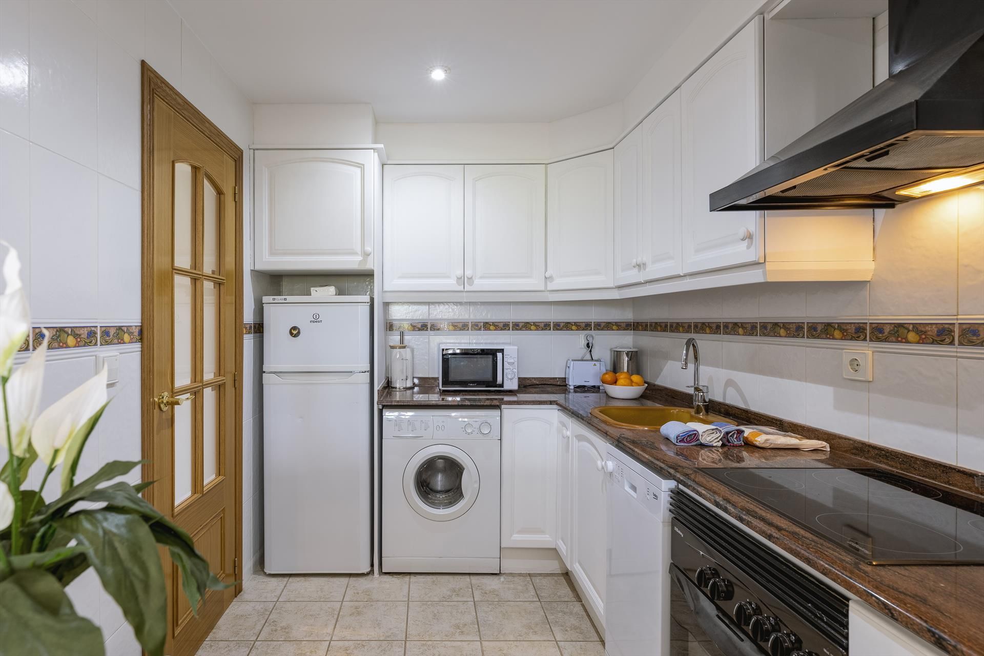 • cocina americana con cocina eléctrica, horno eléctrico, microondas, lavavajillas, refrigerador-congelador, cafetera (Dolche Gusto), calentador de agua, batidor, tostador y exprimidor