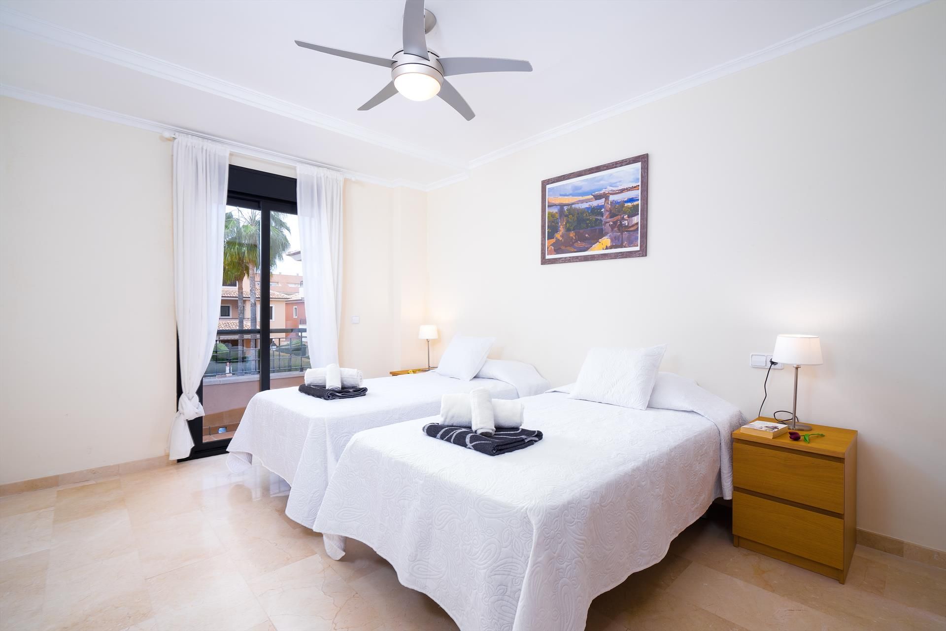 El apartamento tiene 4 dormitorios y 3 cuartos de baño, distribuidos en 2 plantas. El alojamiento ofrece privacidad, un maravilloso jardín privado con césped y árboles y un jardín comunitario con césped y árboles. El confort y la cercanía de la playa, sitios para salir, actividades deportivas, zonas de entretenimiento, lugares de interés y cultura hacen de este apartamento un alojamiento apropiado para pasar sus vacaciones en España con su familia, sus amigos y sus mascotas.