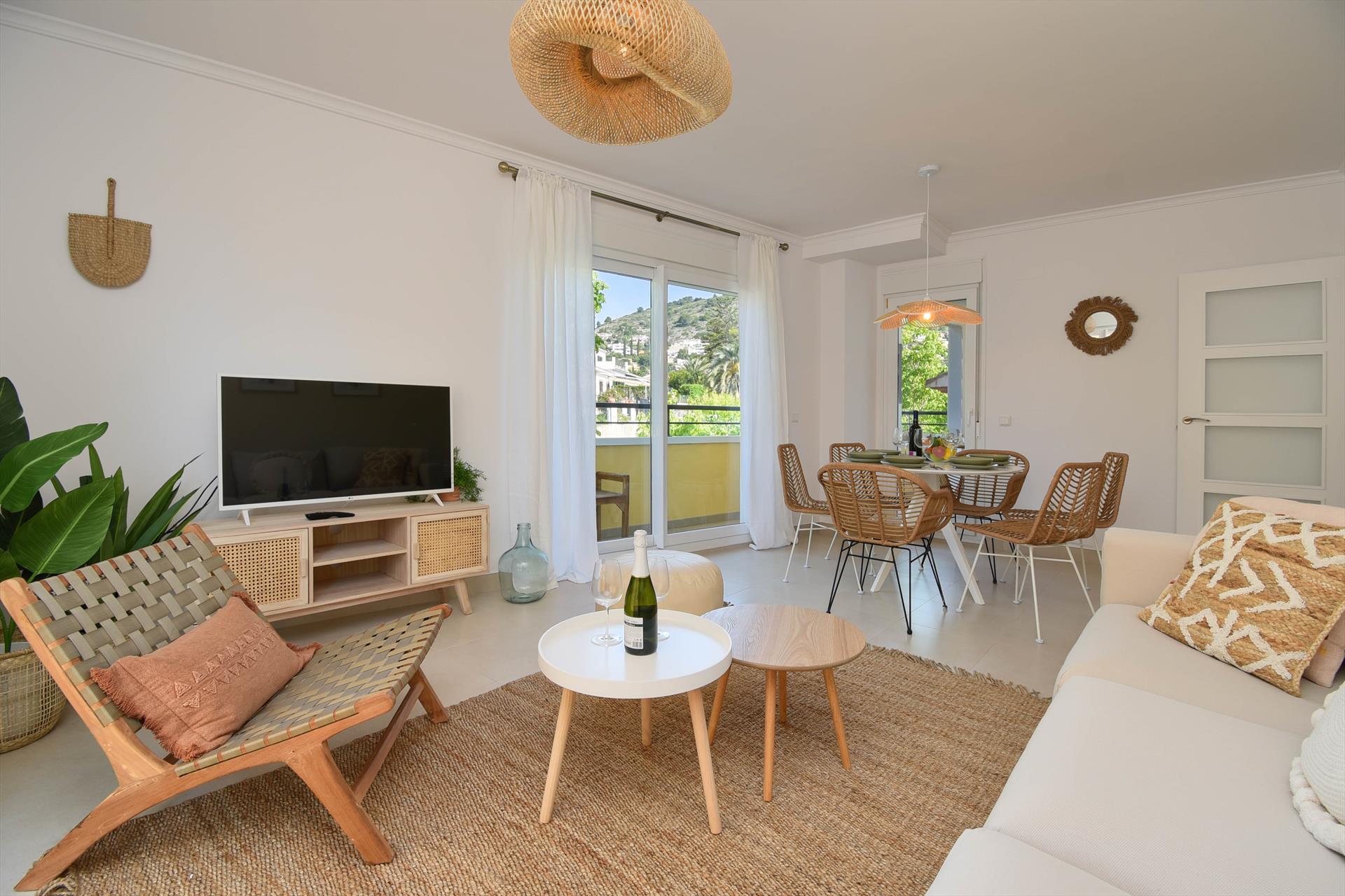 El apartamento de vacaciones tiene 3 dormitorios y 2 cuartos de baño. El alojamiento ofrece unas vistas al valle, a la montaña, a la piscina y al jardín. El confort y la cercanía de la playa, sitios para salir, actividades deportivas, zonas de entretenimiento, lugares para ir de compras, lugares de interés y cultura hacen de este apartamento un alojamiento apropiado para pasar sus vacaciones en España con familia o amigos.