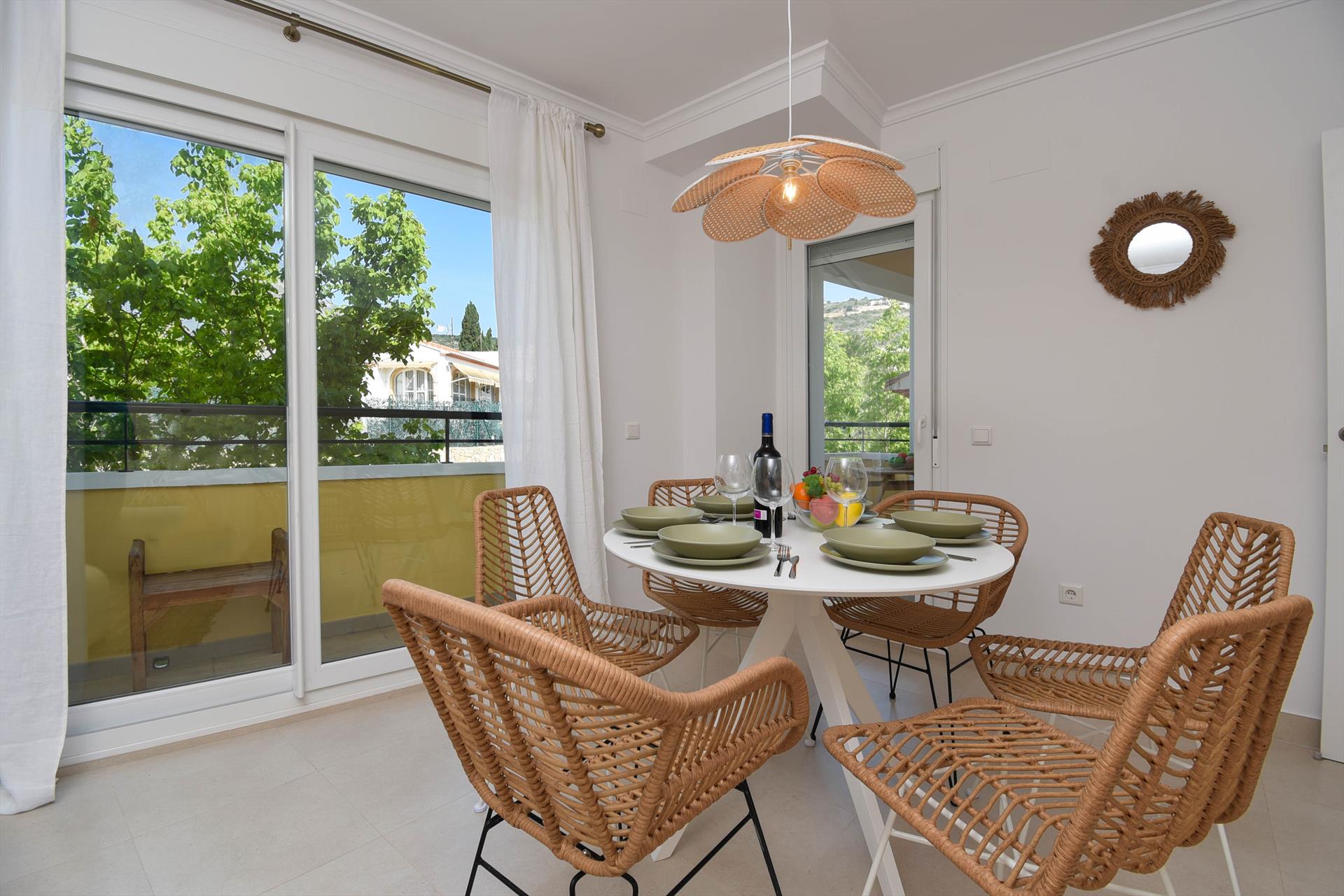 Apartamento maravilloso y acogedor en Jávea, Costa Blanca, España con piscina comunitaria para 6 personas. El apartamento de vacaciones está situado en una zona de playa y residencial.