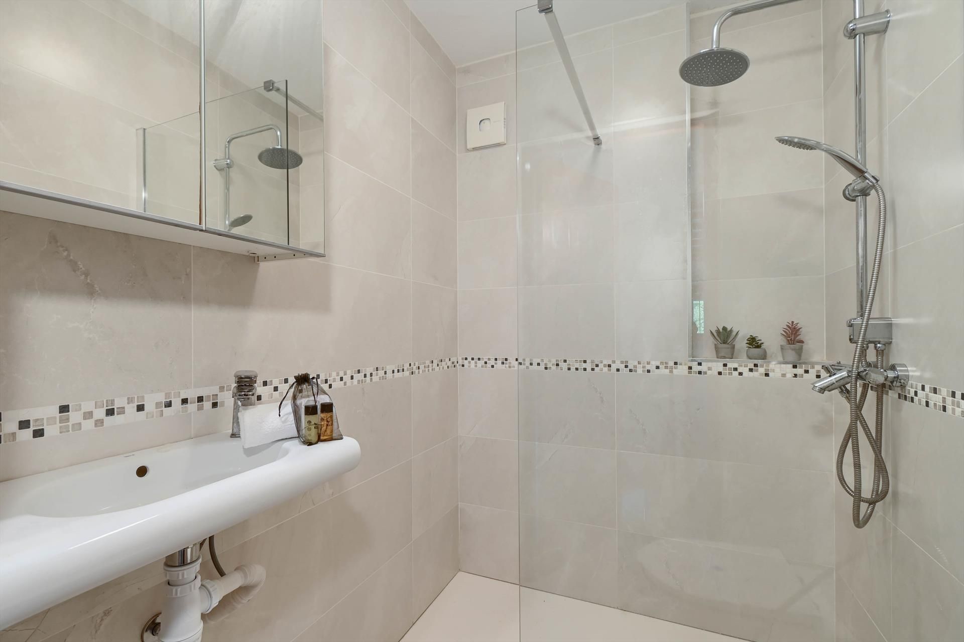 • 2 baños, cada uno con lavabo individual, ducha y wc