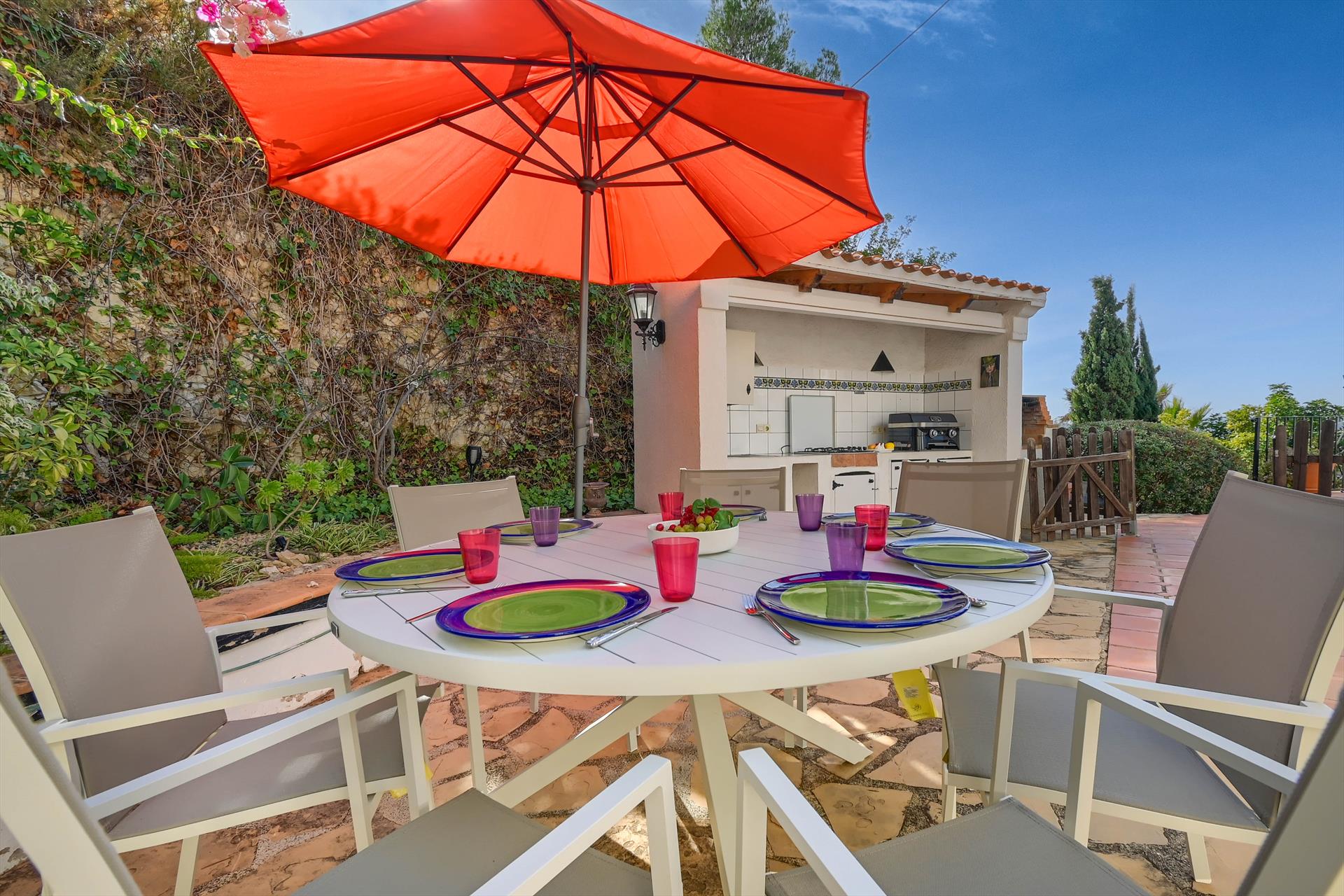 La villa tiene 4 dormitorios y 3 cuartos de baño, distribuidos en 2 plantas. El alojamiento ofrece mucha privacidad, un jardín bonito con árboles, una piscina maravillosa y unas bonitas vistas al valle y a la montaña. El confort y la cercanía de la playa, actividades deportivas, lugares de interés y cultura hacen de esta villa un alojamiento apropiado para pasar sus vacaciones en España con su familia, sus amigos y sus mascotas.