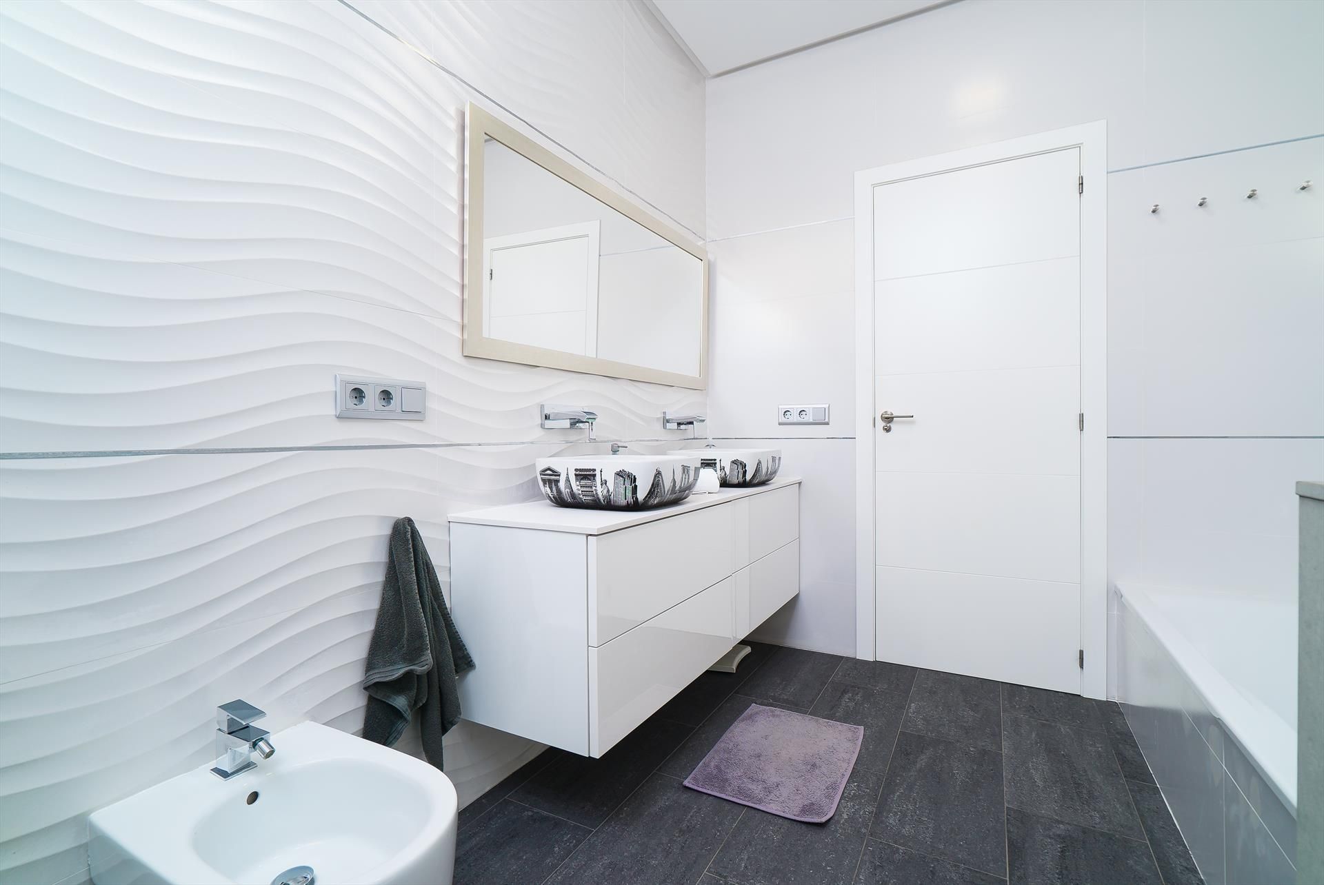 • baño en suite con doble lavabo, bañera, ducha, bidé y WC