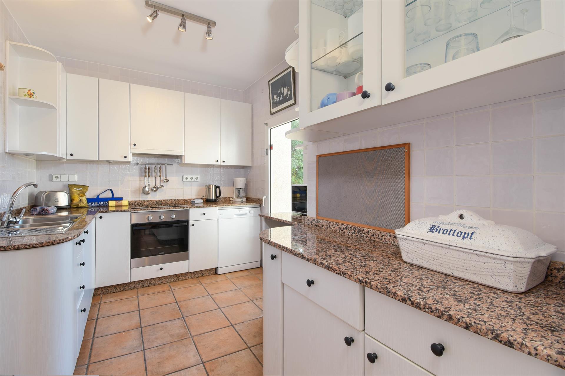 • cocina con vitrocerámica, horno eléctrico, microondas, lavavajillas, nevera-congelador, cafetera, hervidor eléctrico, batidora, tostadora y exprimidor