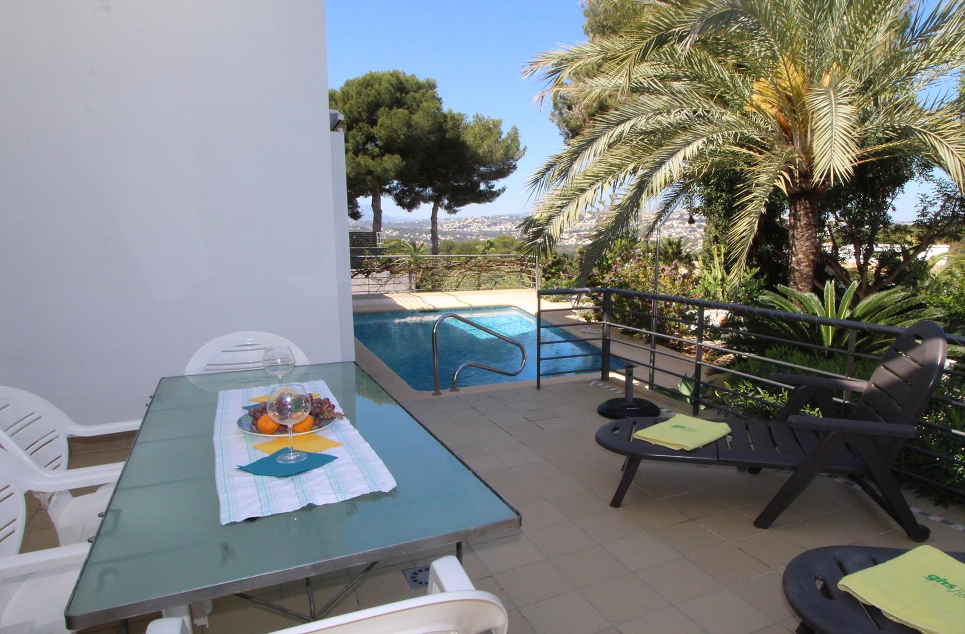 Moderna y cómoda villa con piscina privada en Moraira, Costa Blanca, España, para 6 personas. La casa está situada en una zona residencial cerca de la playa y se encuentra a 1 km de la playa Playa L'ampolla.