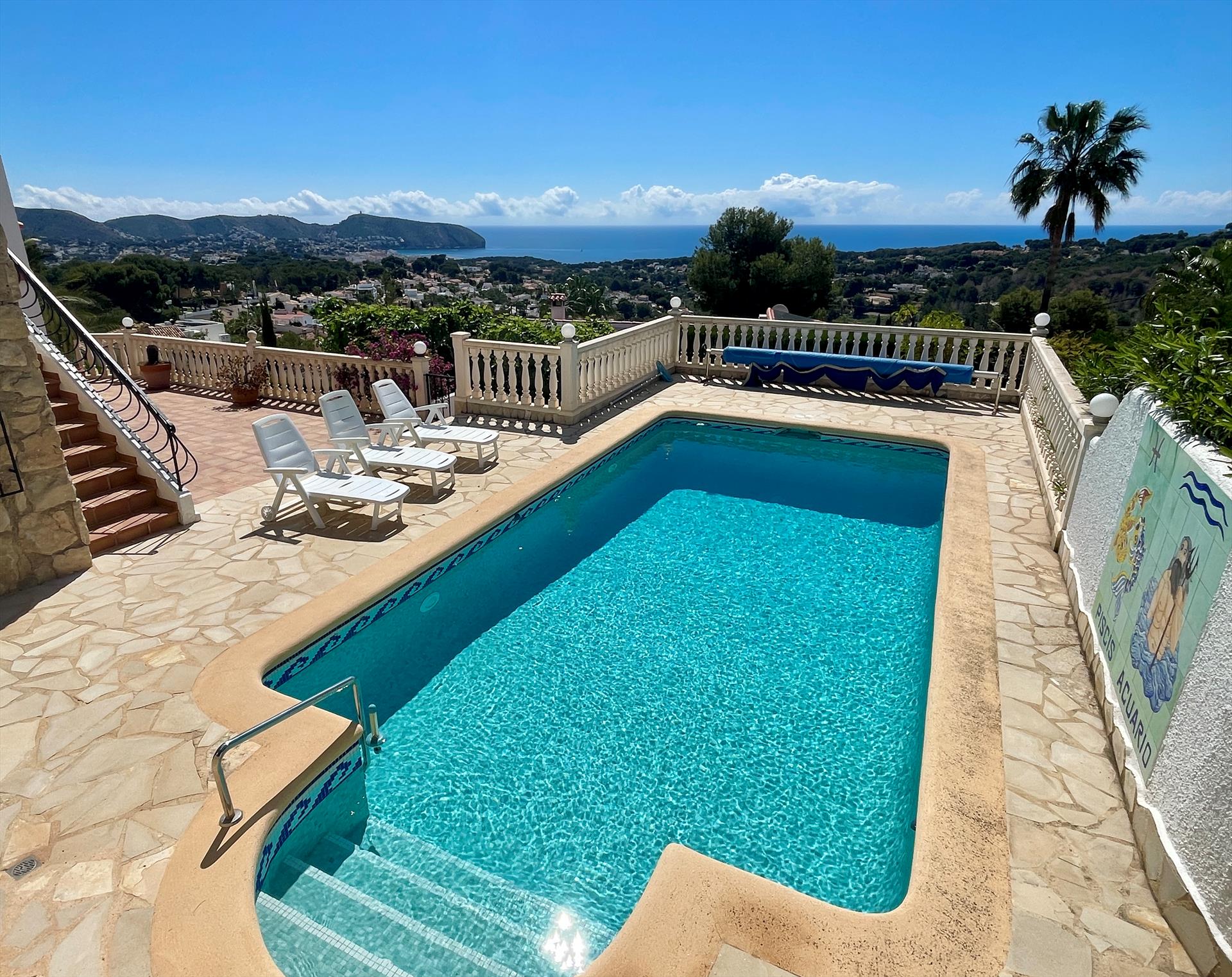 Maravillosa y clásica villa en Moraira, Costa Blanca, España, con piscina privada para 6 personas. La casa se encuentra en una zona urbana de playa y está a 3 km de la playa de Moraira.